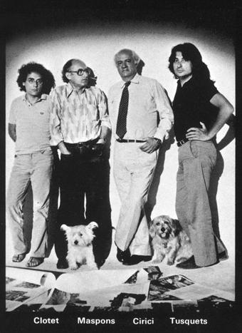 Con Luis Clotet, Oriol Maspons y Alexander Cirici Pellicer en el estudio de Oriol Maspons. Foto para la solapa del libro Arquitectura Gótica Catalana, cuyo autor es Alexander Cirici.