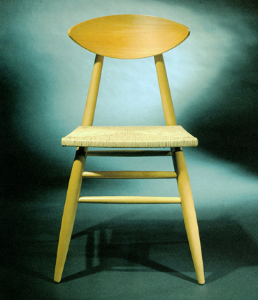 De madera y asiento en enea natural, se trata de una silla no sólo apilable —existe incluso un carrito especial para mover la pila de sillas—, sino también alineable gracias al diseño de una pieza de unión especial. Tras sus anteriores sillas, plenamente diseñadas, la presentación de este modelo tradicional supuso un guiño hacia atrás, una curiosa hibridación entre archivo y revival, la artesanía popular pasada por el tamiz del diseño.