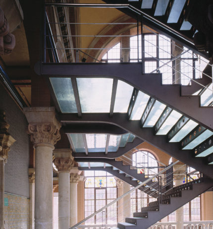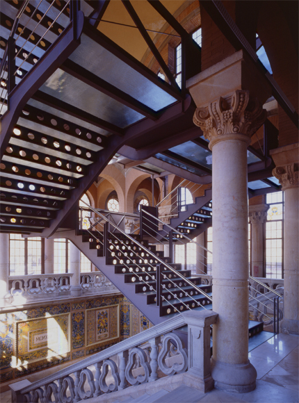 Se trata de una de las primeras intervenciones de un ambicioso proyecto —elaborado por varios arquitectos— de restauración, remodelación y acondicionamiento del Hospital de Sant Pau, en Barcelona, una construcción de 1901 del arquitecto Domènech i Montaner y sus discípulos. Las obras de esta primera actuación, donde destaca una nueva escalera, se inician en 1995 y finalizan en 2000.