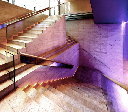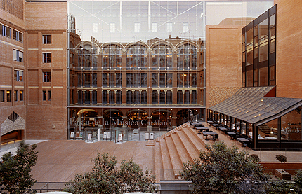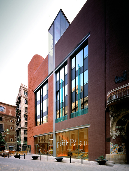Él soñó con un edificio exento y nosotros, un siglo más tarde, hicimos realidad su sueño. Así como en la cara Norte de la plaza habíamos levantado un edificio para los músicos (camerinos, biblioteca...), en la cara Sur levantamos uno para el público y la escuela de música. Y bajo la nueva plaza una sala para 540 espectadores dotada de nuevas tecnologías que tanto precisaba el Palau."