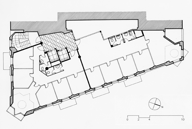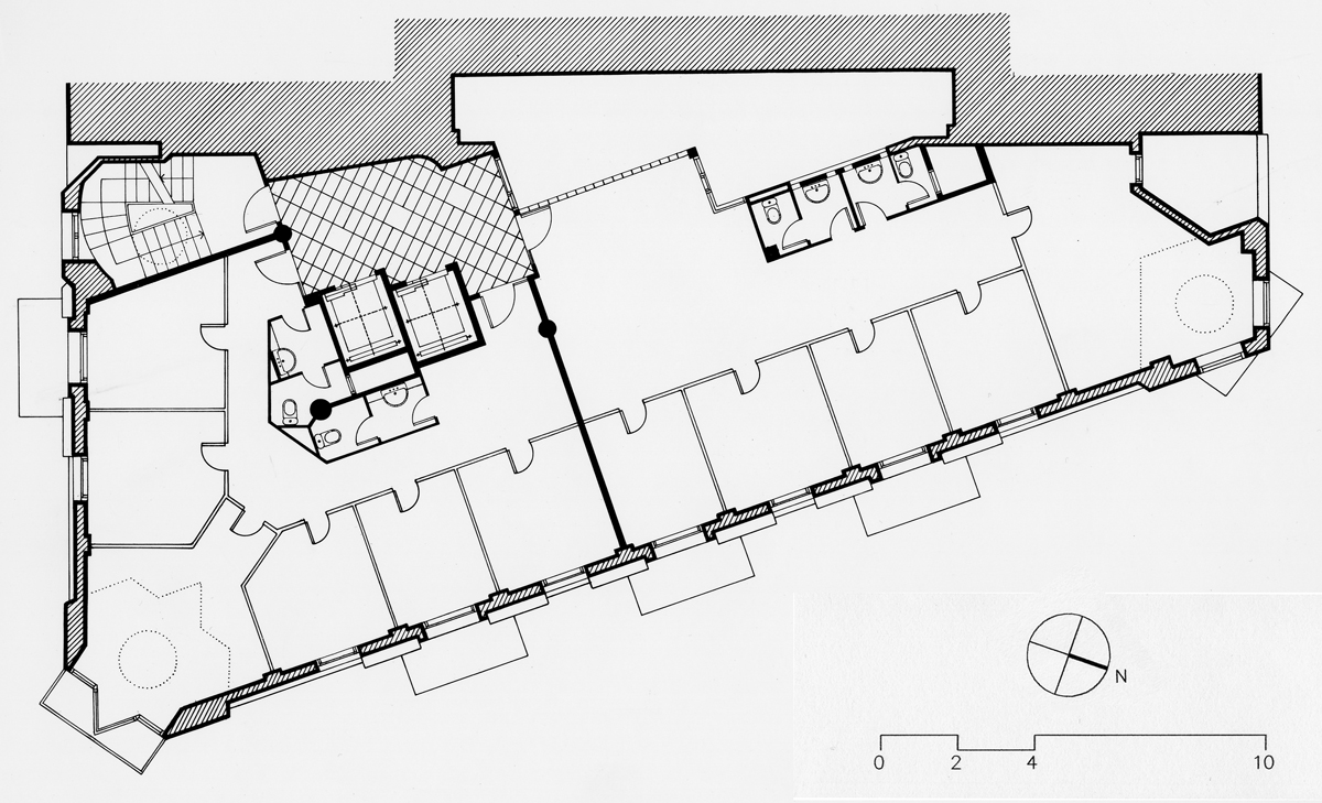 "Una parte histórica de la ciudad. Unas ordenanzas estrictas que pretenden conservar su carácter. Una edificación contigua de gran dignidad. Un solar estrecho donde todo es fachada. El Arco de Triunfo de la Exposición Universal de 1888 al frente. Un promotor exitoso que casi nunca había trabajado con arquitectos externos... El edificio intenta dar una respuesta respetuosa a todos estos condicionantes."