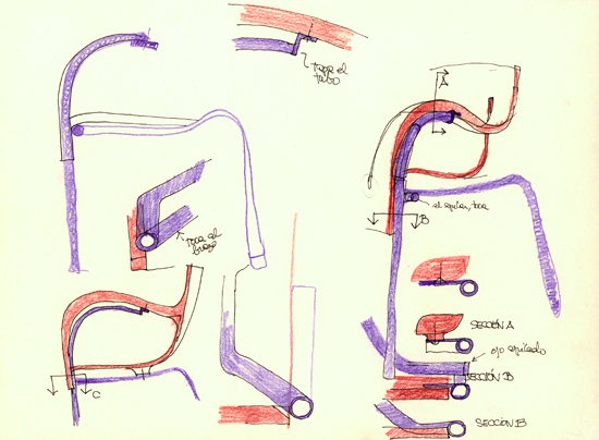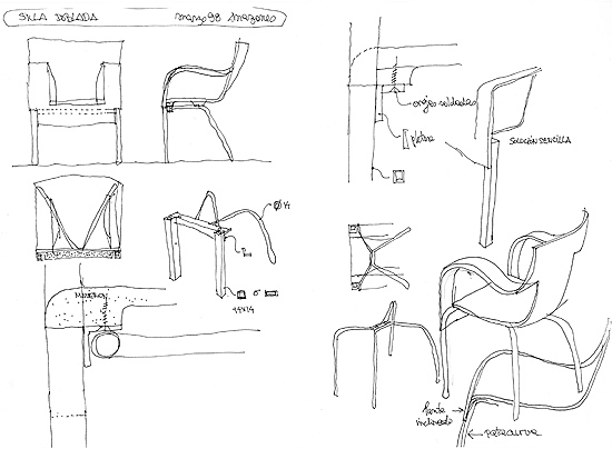"La idea de formar un asiento con una sola lámina, convenientemente recortada y doblada, ha asaltado a varios arquitectos en lo que va de siglo. Recuerdo algunos intentos de Rietveld, de Breuer y, sobre todo, un prototipo que Alvar Aalto desarrolló en los años treinta, aprovechando la nueva tecnología de contraplacado preformado.