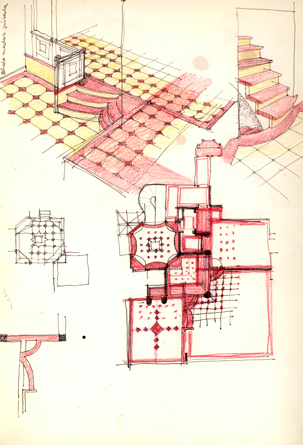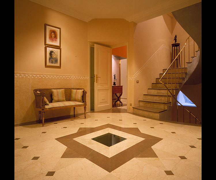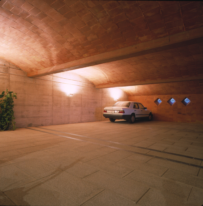 Arquitectura postmoderna, pero donde nada es ficticio: las bóvedas a la catalana del garaje, el estuco de las fachadas e interiores, las finas columnas jónicas de bronce, las columnas y pavimentos de mármol, la cúpula del zaguán pintada por el propio arquitecto…