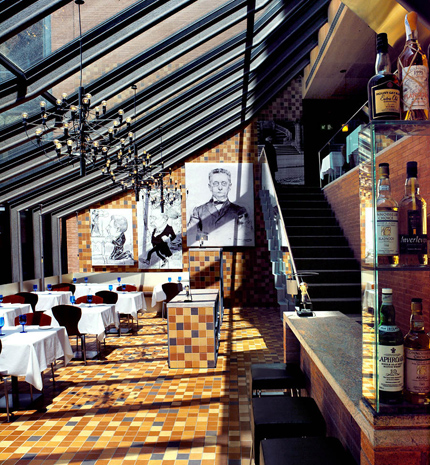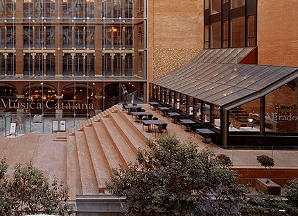 "Dentro de las obras de ampliación del Palau de La Música proyectamos este restaurante con una magnífica vista sobre la nueva plaza y la redescubierta fachada lateral de Domènech. El techo acristalado, situado a Norte y por lo tanto poco soleado, permite una amplia visión del monumento, tanto desde la planta inferior como desde la superior."