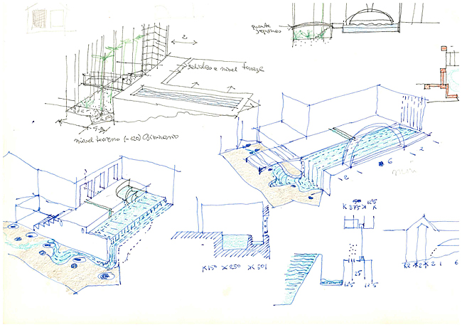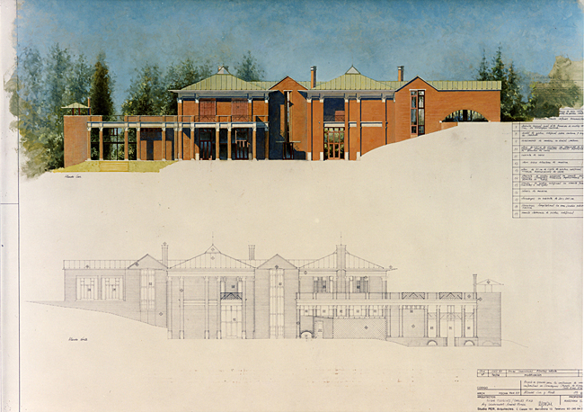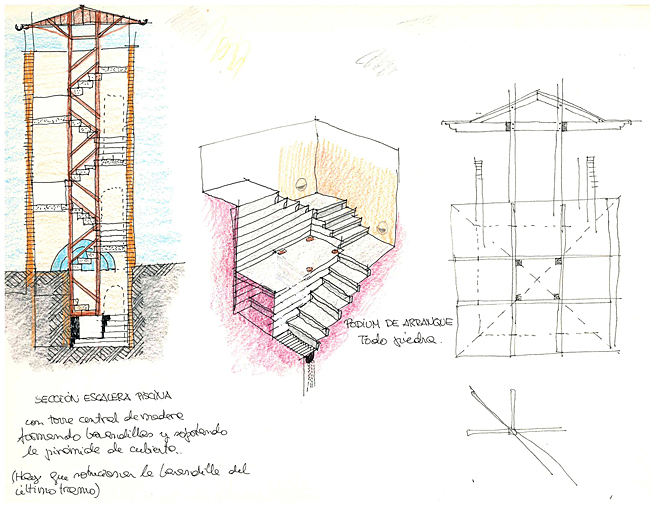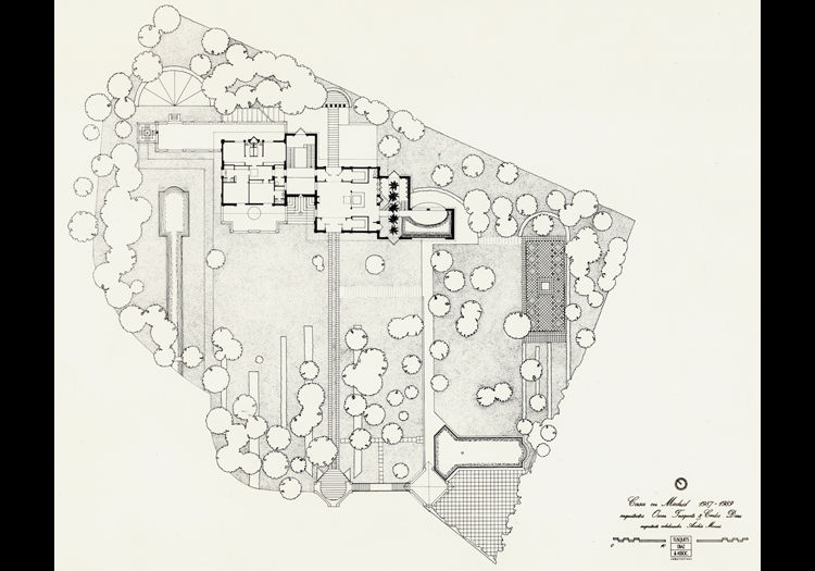 "Madrid no es el Mediterráneo. Aquí tuve que dejar de lado los patios, porches, pérgolas y jardines árabe-romanos que tanto amo. Quizás por esto –y por mi admiración por Lutyens- la casa y el jardín adoptaron un cierto aire británico. La mansión principal se desarrolla en dos plantas pero la colina asciende hasta la planta superior, a cuyo nivel, creamos un paseo elevado que coincide con el estanque situado en la cubierta de la casa de servicio, la cual, protege la puerta de entrada a la finca.