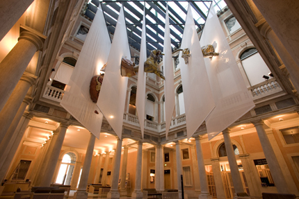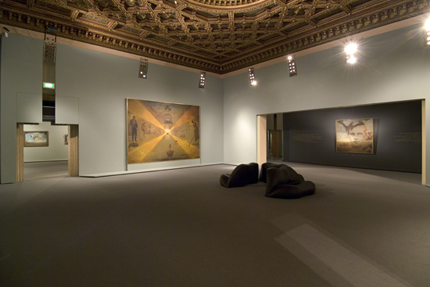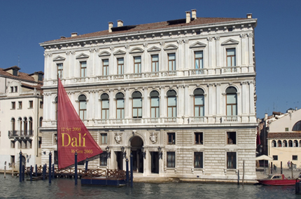 "A Dalí le hubiese encantado ver su obra expuesta en un clásico Palazzo veneciano, frente al Canal Grande, lugar que tanto admiraba y que tantos recuerdos le traía. Por este motivo el montaje respeta al máximo la arquitectura del edificio. Apenas se ha cegado ninguna ventana: ventanas por las que vemos el Campo y el Canal.