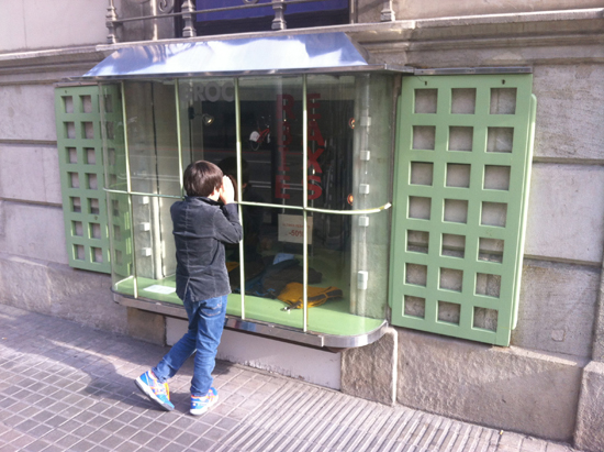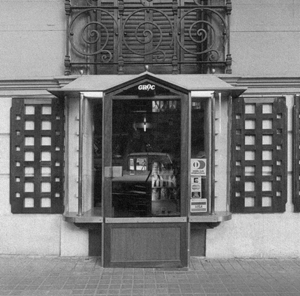 "Intento de dotar de una fachada digna y unos escaparates pequeños pero elegantes a esta sastrería del amigo Toni Miró enterrada en un semisótano, respetando siempre la arquitectura preexistente."