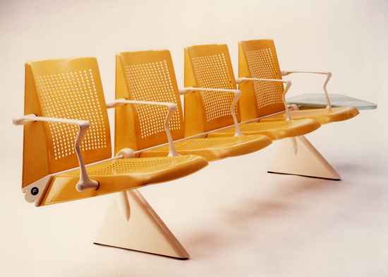 Hasta esa fecha, las habituales bancadas de aeropuertos o de zonas de espera eran simples sillas enganchadas una a la otra, o bien una gran viga sobre la que aterrizaban sillines y respaldos. Y a menudo se encontraban en un deplorable estado de manutención.