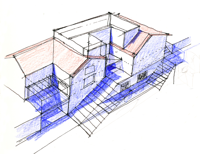 "Esta villa, situada en la parte alta de Barcelona, se asienta sobre un terreno donde ya estaba edificada otra casa. Decidimos derribarla porque, además de su nulo interés arquitectónico, se asentaba en el peor lugar, en la parte baja del jardín.