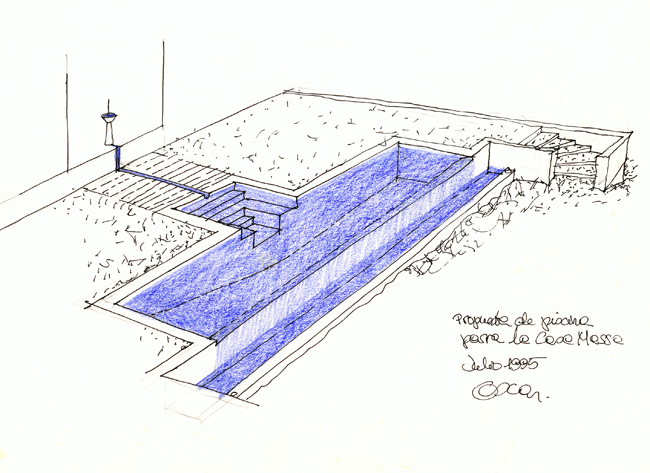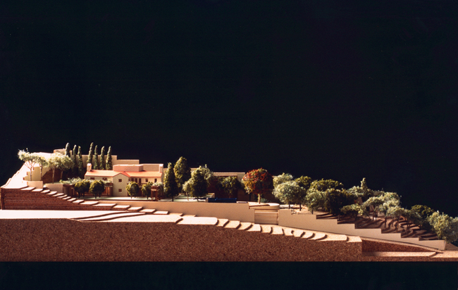 La nueva casa se asienta en lo alto del terreno, desde donde se disfruta de una magnífica vista de la ciudad y del mar. El tratamiento de toda el área exterior, que me parece lo más interesante del proyecto –terrazas, pérgolas, muros de contención, piscina, vegetación– debía tener en cuenta las partes de jardín a conservar. En el fondo, el problema era cómo utilizar los viejos árboles de un mal jardín en un nuevo proyecto. Para este trabajo, como es habitual, conté con la colaboración de la paisajista Bet Figueras."