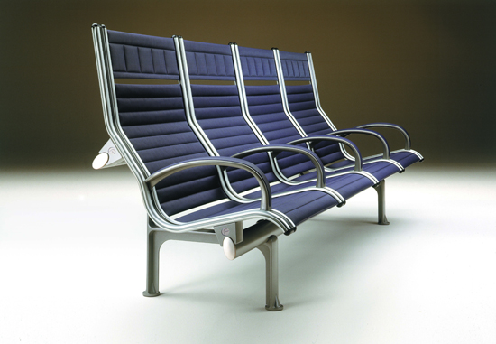 Serie de asientos colectivos para espacios de espera públicos, aeropuertos, estaciones, etc. Se trata de una propuesta versátil en composición y variada en acabados que se sitúa en la gama alta del mercado. Asientos realmente confortables, donde la espera, a menudo larga e indeterminada, se haga más confortable. La silueta compositiva toma la referencia de los asientos de la colección Aluminium Group de Charles Eames y de ahí el homenaje del nombre de la pieza.