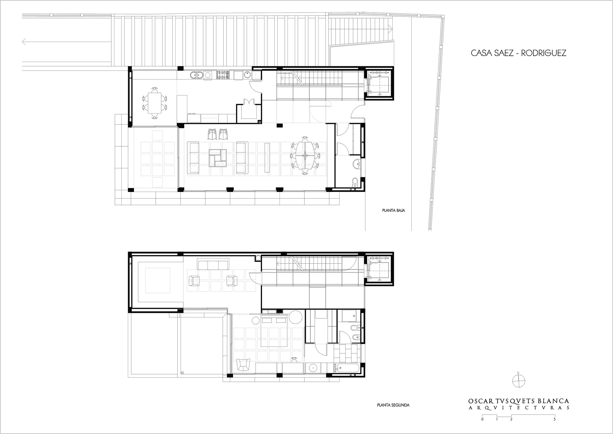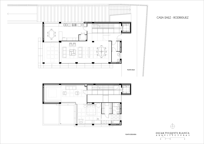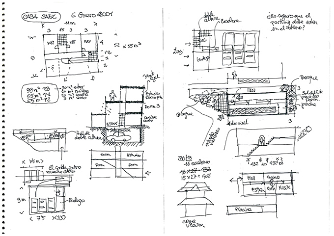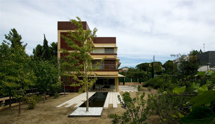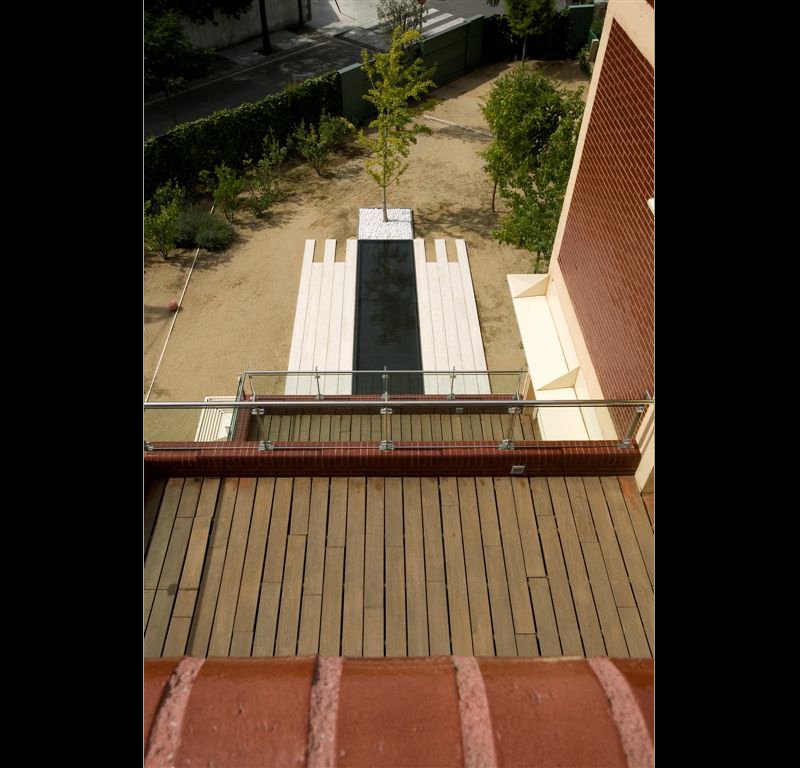 La construcción se escalona provocando porches y terrazas hacia el Sur.