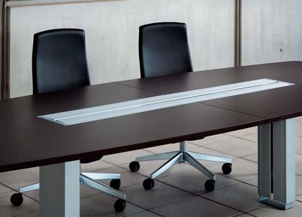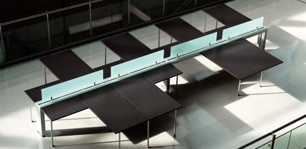 “Una familia de mesas de oficina donde mi máxima preocupación fue ocultar de forma eficiente y radical la maraña de cables que inevitablemente crean entre teléfonos, ordenadores, servers, impresoras y luminarias.”