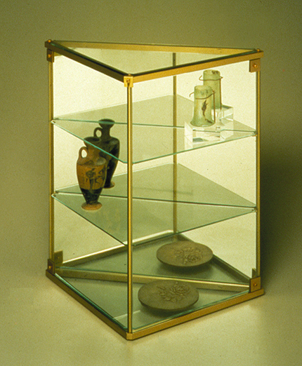 Vitrina diseñada con la intención de dar aspecto moderno a un objeto usualmente cursi: la vitrina. Su función era mostrar, y a la vez proteger, pequeñas piezas delicadas y valiosas.