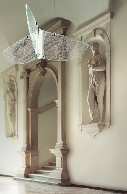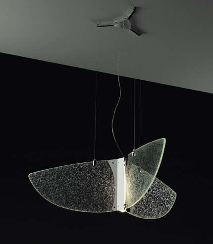 “No es fácil encontrar en el mercado de lámparas contemporáneas un gran lampadario, el equivalente a una araña, un lustre, de lágrimas de cristal. Sin embargo existen grandes espacios arquitectónicos donde lámparas de este porte tienen su sentido. No todo se puede resolver con down-lights ocultas en el cielo raso. A veces precisamos de una lámpara que se vea, que ordene el espacio, de gran tamaño pero cristalina, bella tanto encendida como apagada.