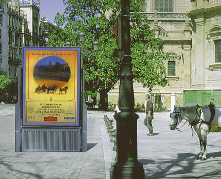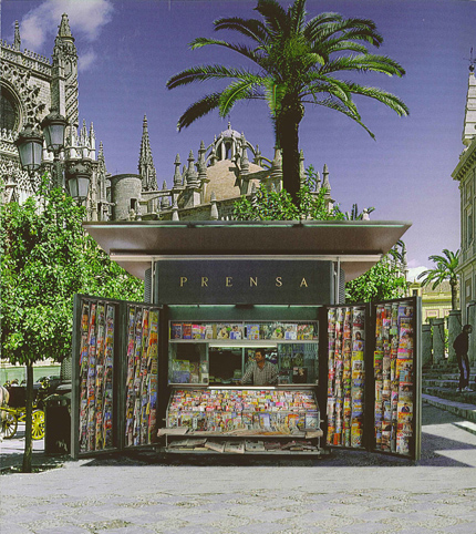 A raíz de la colocación de una columna anunciadora de OTB en la ciudad de Sevilla, se desarrolló un kiosco que se comenzó a instalar en 1998. Se trata de una caja rectangular, susceptible de modularse tanto en altura como en anchura o longitud, conformada por perfiles extrusionados de aluminio y paneles de Alucore, que pueden ser opacos o contener publicidad retroiluminada.