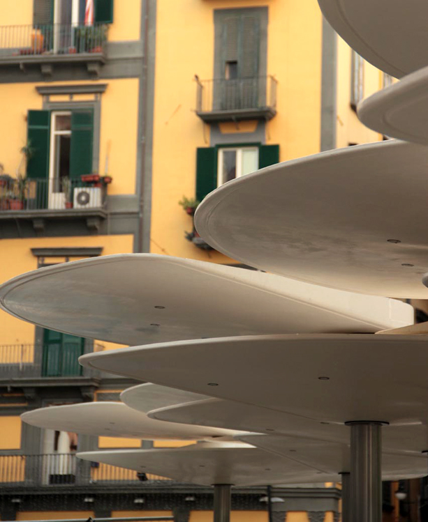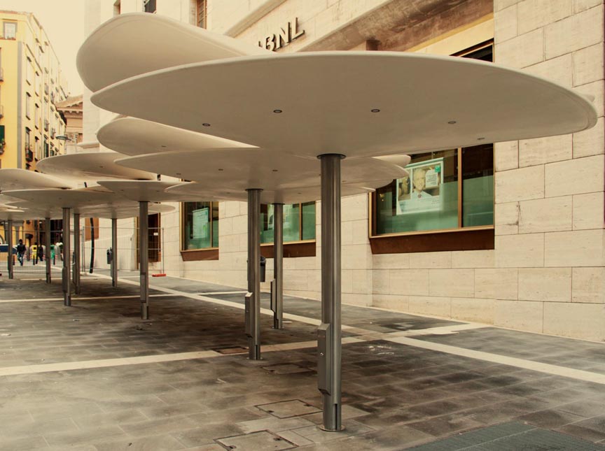 Diseñada para el mercadillo de la plaza de Díaz, que está situada sobre la estación de metro Toledo, en la ciudad de Napoli (estación diseñada por OTB). Además de proteger de la lluvia y del sol a los puestos del mercado, los ilumina por la noche, mediante leds empotrados en la cubierta, y les suministra conexión a la red eléctrica.