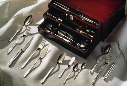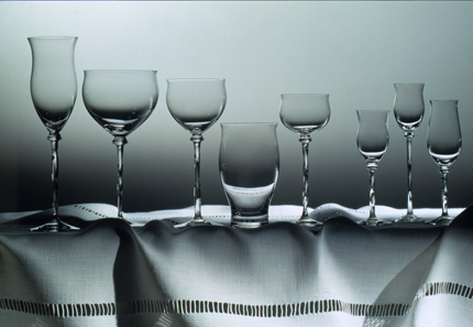 La propuesta de OTB sólo pretende corregir algunas anomalías, por eso el cuchillo de pescado es simétrico (apto para zurdos y diestros), con una pequeña sierra que permite cortar marisco o pescados consistentes. También por sentido común los cubiertos de postre mantienen intacto su mango y únicamente modifican la cabeza, ¿o es que las manos se encogen cuando llegamos al postre? Respecto a la decoración, ésta se sitúa allí donde no estorbe y pueda embellecer, en la punta del mango, y alude de forma figurativa a los diferentes usos: una pezuña para carne, la cabeza de un pez para el pescado, una manzana para el postre, un grano de café para la cucharilla de café y una hoja para el té. La cristalería se compone de un vaso para agua y siete copas para diversos usos, todas con un pie alto y delgado, con forma entrelazada para mejorar el agarre y ofrecer un tono sombreado, sugiriendo un cáliz que conecta con el vaso; su embocadura se abre ligeramente hacia el exterior para recibir mejor los labios.