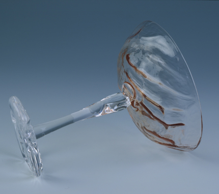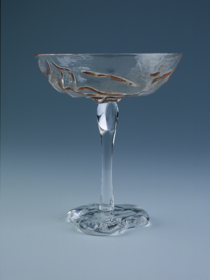 La belleza de esta copa no se puede disfrutar sólo con la vista, se necesita tomarla entre las manos. El cuerpo de la copa reproduce el cuenco formado por las manos cuando intentan recoger un líquido. El pie reproduce el agua que se escapa entre los dedos y el charco que se forma en su base: por esto es totalmente transparente e incoloro, mientras el cuerpo es rosado y traslúcido.