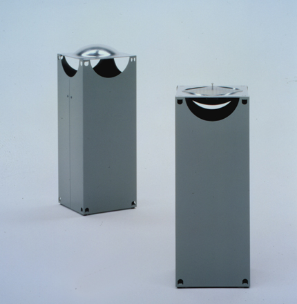 Diseñado para el Palau de la Música de Barcelona. Al darle la vuelta la pieza superior se convierte en cenicero. En aquellos años era impensable que un día no se podría fumar en ningún lugar del edificio.