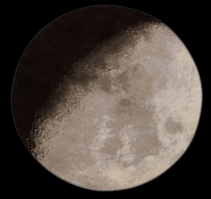 “Acordamos con Nani Marquina que si retomábamos la idea antes producida por Bd debíamos mejorarla. Por una parte, tenía que adaptarme a las posibilidades de la producción absolutamente artesanal de la India pero, por otra, podía contar con reproducciones fotográficas de la luna mucho mejores. Tras muchas pruebas en distintas fases de nuestro satélite optamos por este cuarto creciente y por un tamaño mayor del original.”