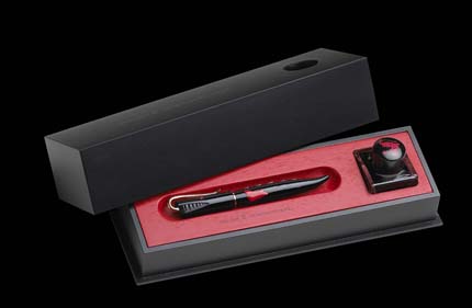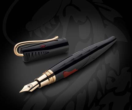 “La empresa tuvo la idea de lanzar una serie limitada de plumas de coleccionista con motivo de la diada de Sant Jordi, una festividad de gran arraigo en Cataluña celebrada con rosas y libros. La pluma alude al legendario dragón, ya herido por el caballero, por lo que se desangra por la herida abierta bajo una de sus alas y por la boca (la carga de tinta original es roja).”