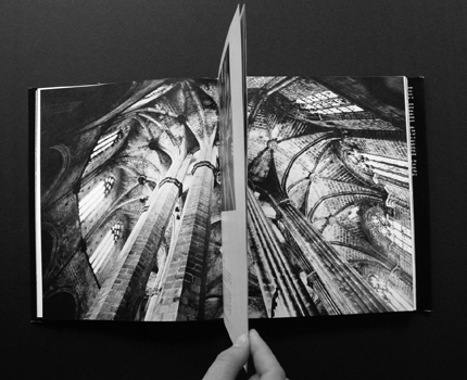 “Íntima colaboración entre Alexandre Cirici (responsable del texto), Oriol Maspons (de las fotografías) y nosotros (diseñadores de la maqueta). Las fotos fueron realizadas en función de las ideas de Cirici y previendo cómo se maquetarían: Estuve al lado de Oriol en caso todas las toma (incluidas las tomadas en Italia). Esto nos permitió, por ejemplo, comparar naves de distintas iglesias pinzando con los dedos algunas páginas intermedias”
