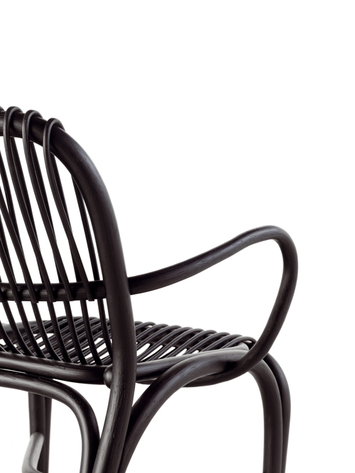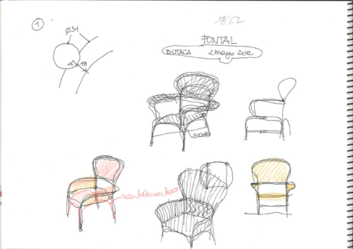 “La butaquita Fontal parte de soluciones -como la unión de las cañas sin ataduras- ya investigadas con éxito en la silla del mismo nombre. He abandonado la rejilla substituyéndola con finas cañas de rattan que se mantienen paralelas gracias a la pieza continua que forma los brazos y retorna bajo el asiento y tras el respaldo. El secreto del diseño.