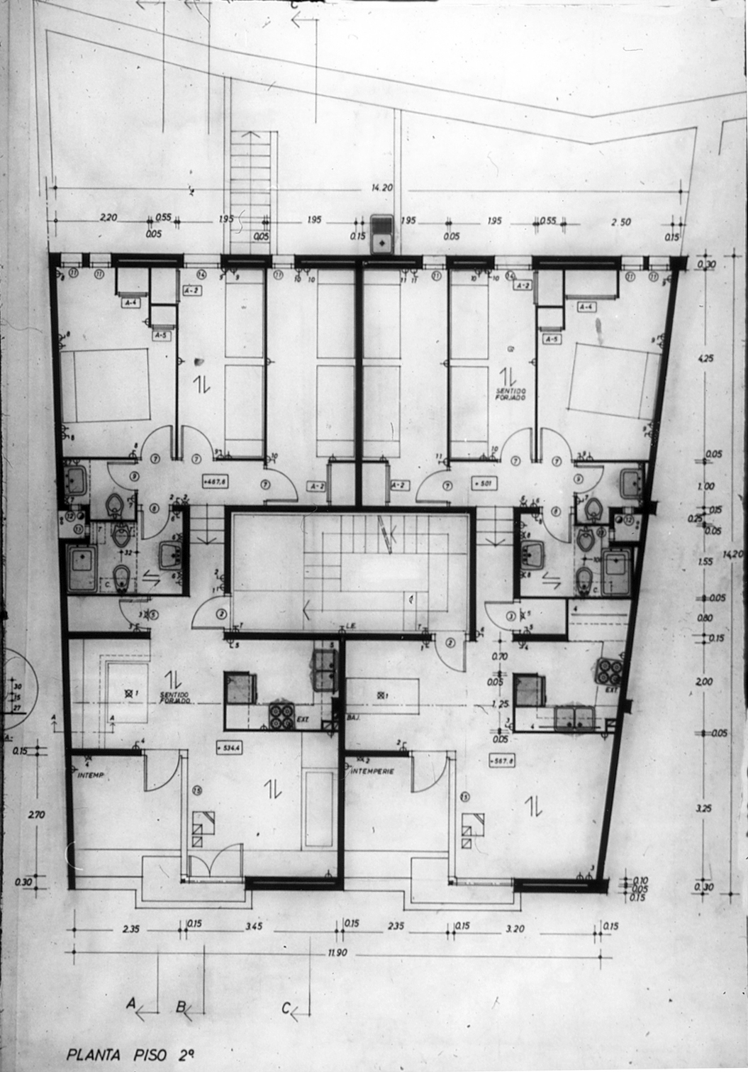 Segunda experiencia junto a Solitari 1. Seis apartamentos. Por el extremado desnivel entre ambas fachadas, los apartamentos inferiores son dúplex y miran sólo a la principal. Una compleja escalera de estructura metálica y escalones enrejados conecta los seis apartamentos, todos ellos situados a cotas distintas. Un intento de respetar la pequeña escala de todo el pueblo.