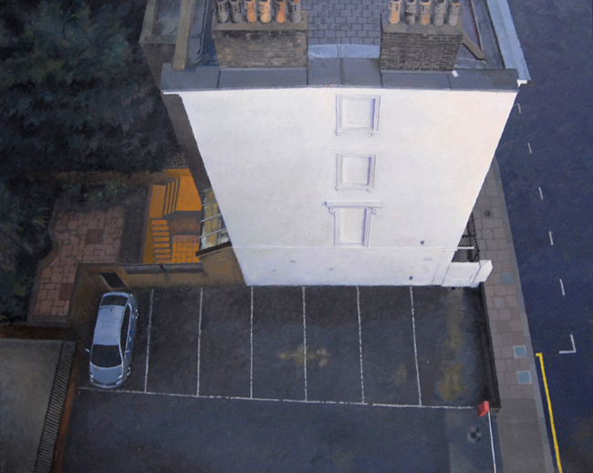 Esta pintura interpreta una medianera típicamente londinense. Por ley, tanto en España como en Inglaterra, no se pueden abrir ventanas sobre un predio vecino. Cuando este solar vecino no se edifica, el arquitecto debe afrontar el problema de levantar una fachada opaca que respete la dignidad del espacio urbano. En nuestro entorno podemos observar las múltiples aberraciones que ha generado este problema. El paisaje de Barcelona está plagado de medianeras con tabiques pluviales, teóricamente provisionales, dejados a la vista; el de Valencia repleto de medianeras negras por la impermeabilización asfáltica. La pretensión de dignificar estos paramentos recurriendo a artistas más o menos callejeros es de una ingenuidad patética.