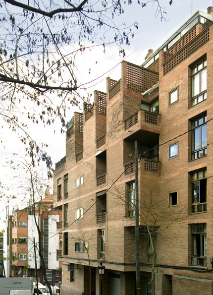 Queríamos investigar hasta qué punto un edificio de viviendas en zona urbana podría configurarse de manera distinta al modelo habitual, modelo que se limita a superponer plantas iguales, formadas generalmente por la repetición de una vivienda tipo y que ofrece muy pocas posibilidades para albergar usos diversificados. Como pretendíamos un solo acceso y escalera y que todas las viviendas diesen a la calle la solución acabó englobando viviendas simplex, dúplex, tríplex y cuatrúplex."
