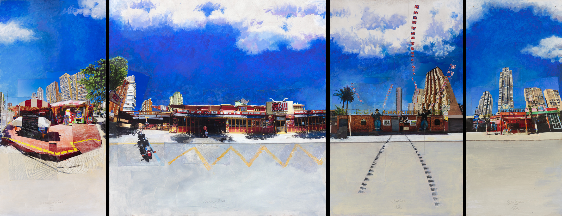 Con Eva Blanch Collages fotográficos con intervención pictórica sobre tabla 90 cm de altura