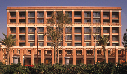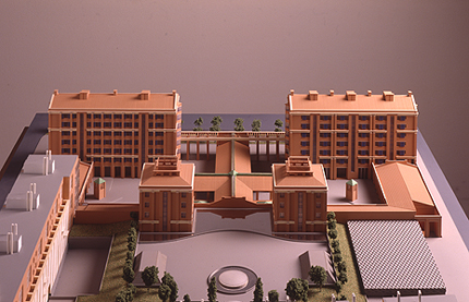 Con motivo de las Olimpiadas de Barcelona, el Ayuntamiento decidió crear un nuevo barrio situado en una antigua zona industrial cercana al mar. Se eligió a los arquitectos ganadores de los premios FAD para adjudicar los diferentes proyectos, que debían respetar una serie de condicionantes comunes. OTB recibió el encargo de dos bloques de viviendas, dos torres de oficinas y el pabellón de entrada a un centro comercial. La construcción se resuelve con el estilo clasicista, usando el ladrillo y la piedra artificial para crear el ordenamiento compositivo.