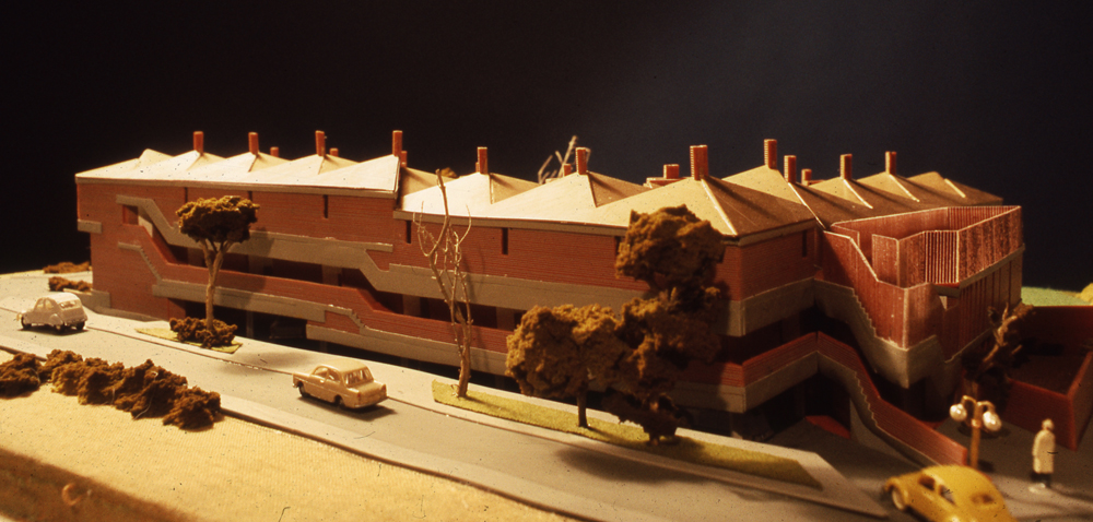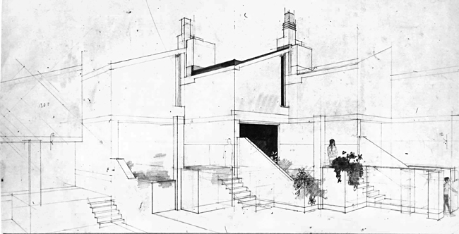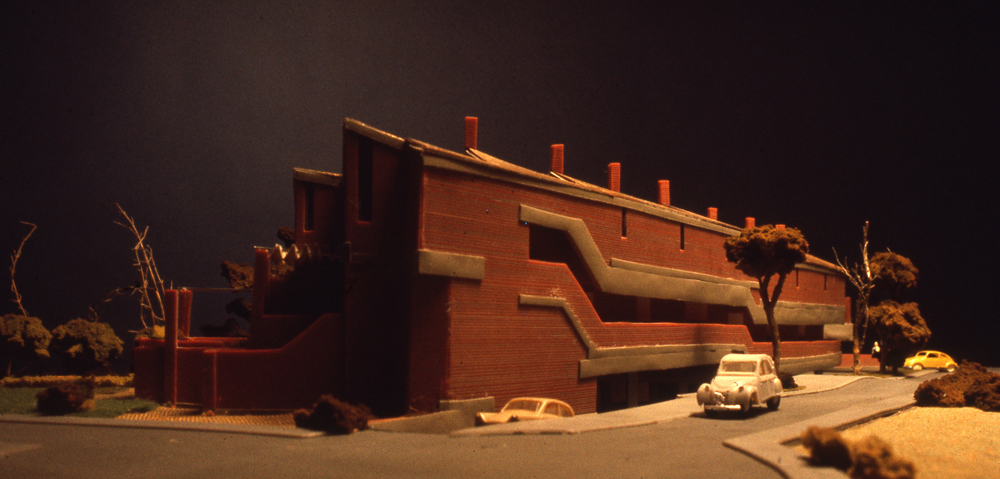 Una serie de viviendas desarrolladas en tres niveles además de un garaje en semisótano. Cierran un jardín colectivo, además de uno privado y un solárium en la cubierta. Máximo aprovechamiento del sol y de la vivienda individual que toca al terreno. Un solo vado para todos los garages: respeto por la continuidad de las aceras.