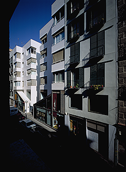 hendidura para iluminar las dependencias retrasadas de las viviendas y solear la calle.