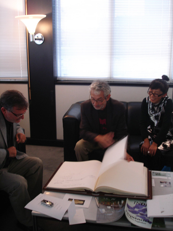 Arriba la obra ganadora. Abajo, Kazuyo Sejima con Oscar Tusquets Blanca y la patrona Anatxu Zabalbeascoa visitando las obras. En el Col.legi d’Arquitectes firmando el libro de honor. Cenando en el Botafumeiro con los patronos Eva Blanch y Jordi Torres. En la entrega de premios con los patronos Anatxu Zabalbeascoa y Juli Capella. Finalmente el ganador recibiendo el premio en el estudio de OTB.