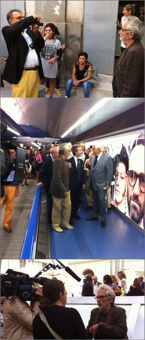 OTB y Oliviero Toscani también asistieron. El artista italiano aprovechó la ocasión para fotografiar a OTB y poderlo así incluir en el espectacular “friso napolitano” que cubre varios metros de pasillo de la estación y del que es autor.